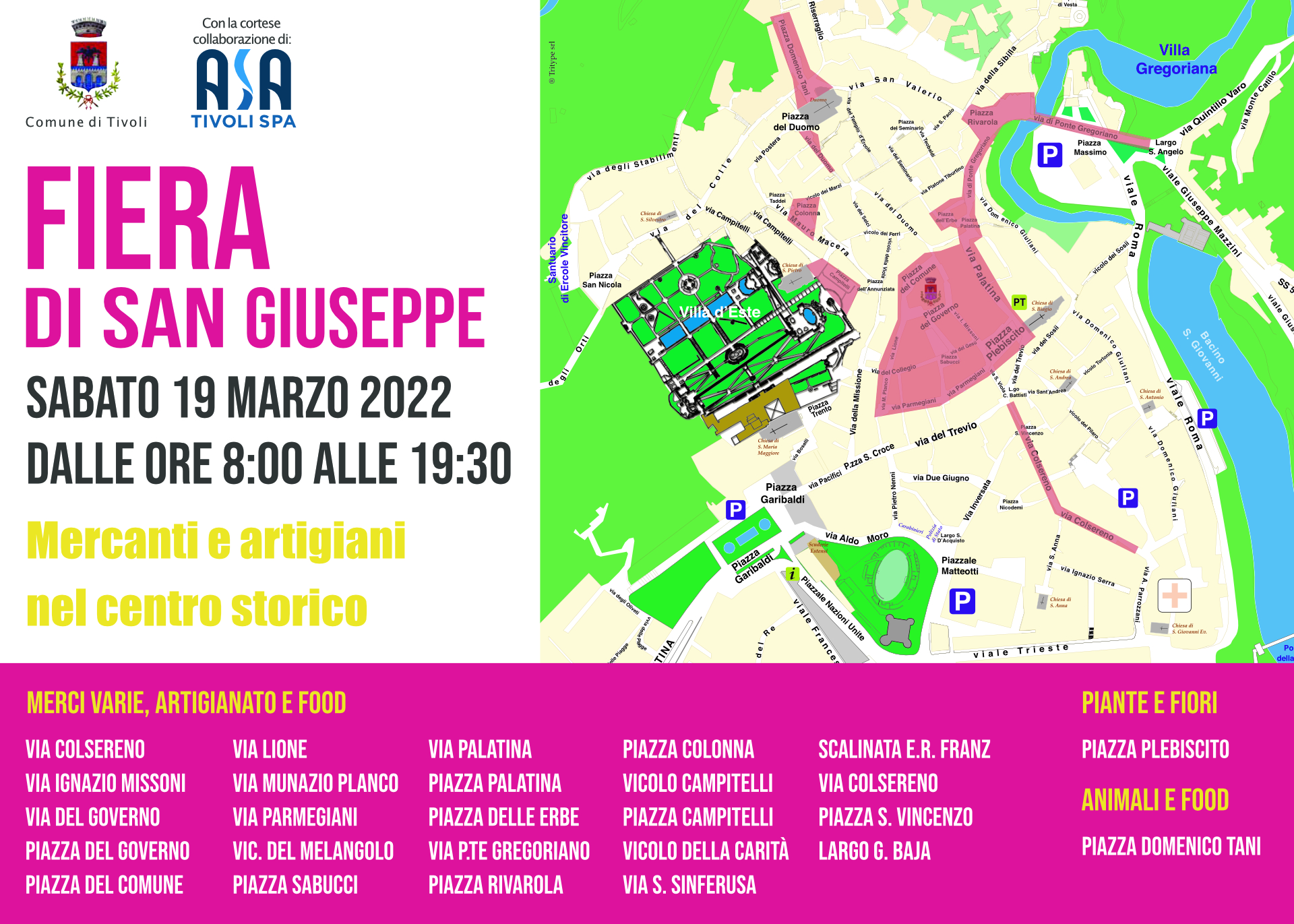 «La Fiera di San Giuseppe è uno degli eventi storicamente più attesi dai tiburtini. Nel 2020 e nel 2021 l’emergenza Covid-19 ci ha costretti a rimandare l’evento a “data da destinarsi”. È per noi un onore, quest’anno, poter tornare ad animare le vie della nostra città con i tipici banchi», afferma il sindaco di Tivoli Giuseppe Proietti.
