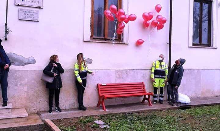 Arsoli -“Nonostante le cattive condizioni meteo, alla presenza del Parroco, degli amministratori comunali di maggioranza e minoranza, di rappresentanti delle associazioni locali (molte delle quali guidate proprio da donne), abbiamo inaugurato la panchina rossa in prossimità dell’ingresso al palazzo municipale.” Con queste parole il sindaco Gabriele Caucci annuncia la simbolica cerimonia, e così prosegue: “