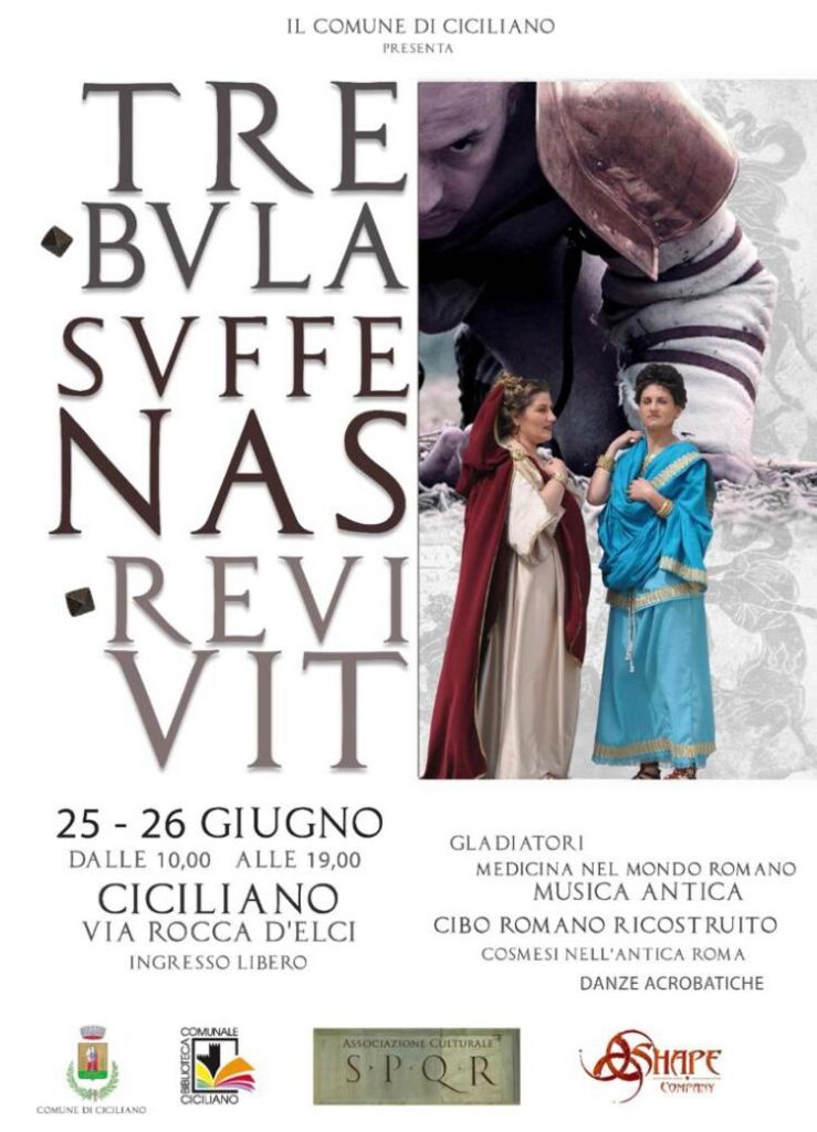 Ciciliano – Sabato 25 e Domenica 26 dalle ore 10 alle 19 presso il giardino di Santa Maria Maddalena in Via Rocca d’’Elci, a Ciciliano, un grande appuntamento con TREBULA SUFFENAS REVIVIT per raccontare ed immergersi nella storia di Roma, anche attraverso gli oggetti.