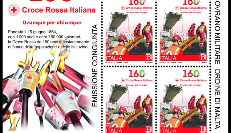 Poste Italiane comunica che oggi 15 giugno 2024 viene emesso dal Ministero delle Imprese e del Made in Italy un francobollo ordinario appartenente alla serie tematica “il Senso civico” dedicato alla Croce Rossa Italiana, nel 160° anniversario dell’istituzione, emissione congiunta con Stato della Città del Vaticano, Repubblica di San Marino e Sovrano Militare Ordine di Malta, relativo al valore della tariffa B apri a 1.25€.