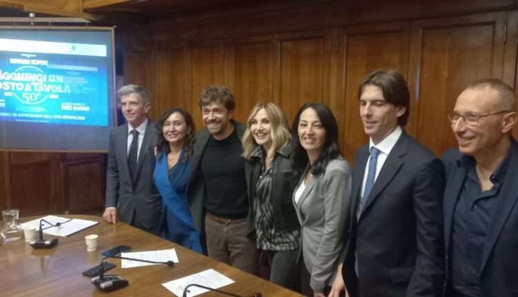 ROMA – A Palazzo Valentini la Conferenza stampa per il 50° Anniversario di “Aggiungi un posto a Tavola”, una serie di eventi e celebrazioni, “50 anni e non sentirli”, che porteranno al 29 novembre, quando debutterà l’edizione speciale al Teatro Brancaccio con Lorella Cuccarini e Giovanni Scifoni, e resterà in scena per diverse settimane. A portare i saluti istituzionali di Città metropolitana la Consigliera Cristina Michetelli, delegata a Bilancio e Patrimonio, in rappresentanza del Sindaco Roberto Gualtieri, assieme a Svetlana Celli, della Presidente dell’Assemblea Capitolina, e Alessandro Onorato, Assessore ai Grandi Eventi per Roma Capitale, che ha patrocinato l’edizione.