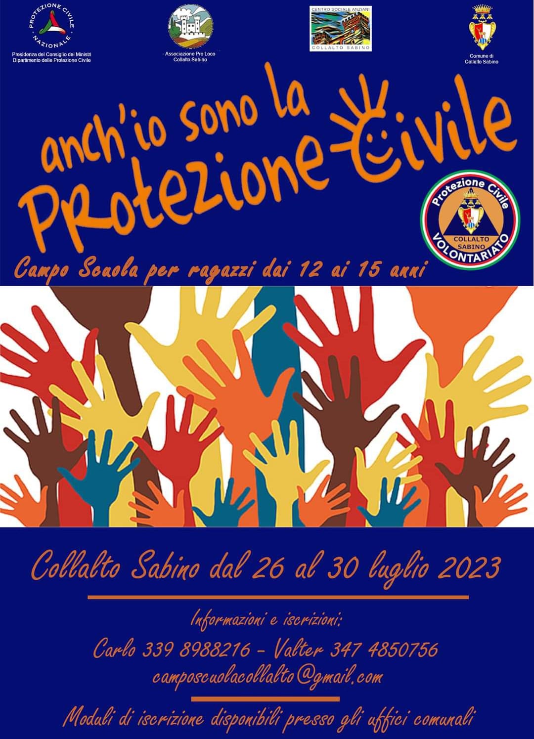COLLALTO SABINO – Il Gruppo Comunale di Protezione Civile di Collalto Sabino partecipa alla tredicesima edizione del progetto nazionale “Anch’io sono la protezione civile”, con un campo scuola riservato ai ragazzi dai 10 ai 16 anni, in programma dal 26 al 30 luglio 2023 presso il Convento di Santa Maria, Via Roma 60 a Collalto Sabino.