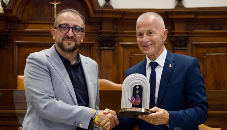 L’Aquila. Il sindaco dell’Aquila e Presidente del Comitato Perdonanza, Pierluigi Biondi, ha consegnato il premio nelle mani del sindaco di Assisi, Valter Stoppini, per il riconoscimento alla comunità di Assisi già legate dal patto di Amicizia tra le Basiliche della Porziuncola e Collemaggio, pronunciando queste parole: “Alle cittadine e ai cittadini di Assisi, in nome del lascito di Celestino V viene assegnato il Premio del Perdono 2025 per l’impegno come costruttori di pace, perseguendo il cammino tracciato da San Francesco, messaggero di fraternità, sostenitore del valore universale del perdono e apostolo del rispetto per tutte le creature. Una comunità che interpreta e custodisce quello ‘Spirito di Assisi’ nato e progredito grazie a Papa Giovanni Paolo II che nel 1986 accolse ad Assisi settanta rappresentanti delle principali religioni del mondo per elevare una preghiera, fatta di unione e speranza. Una comunità che accoglie e non discrimina quella di Assisi, consapevole della fecondità del dialogo, chiave di volta per la costruzione di una civiltà del convivere. Una comunità che ha fatto del rispetto una pratica per costruire ponti anziché muri e che trova nella comunità dell’Aquila la stessa vocazione per una società più giusta e umana, ispirata dai valori celestiniani della misericordia, compassione, perdono e riconciliazione, tanto cari anche a San Francesco”.