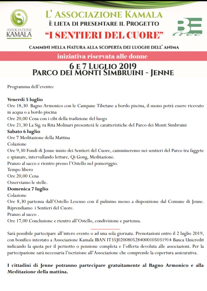 Il Progetto “ I sentieri del Cuore: cammini nella Natura alla scoperta di luoghi dell’Anima” proposto dall’Associazione Kamala, inizia nel bellissimo borgo di Jenne immerso nel verde del Parco dei Monti Simbruini, luogo incontaminato dove si respira ancora un’aria ricca di pace e piacevole semplicità.