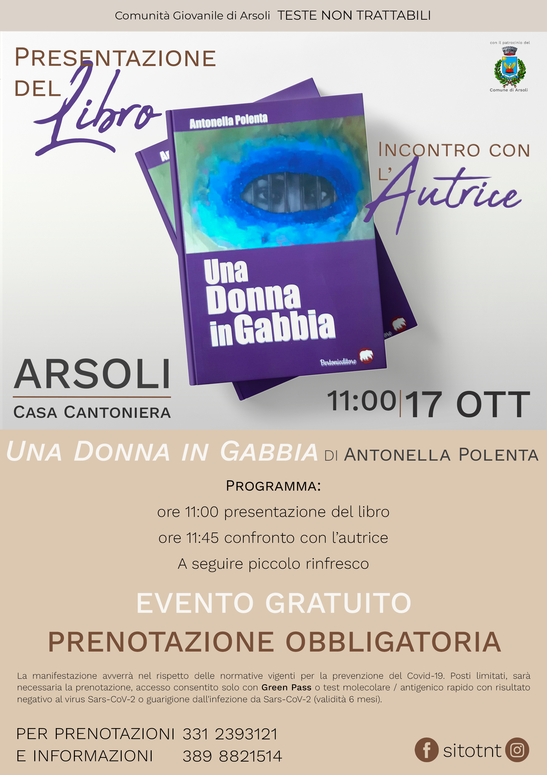 * ore 11:00 presentazione del libro “Una donna in gabbia”, incontro con Antonella Polenta;