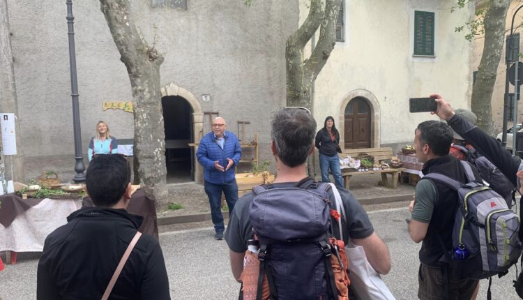 CAMERATA NUOVA – Bella e gradita accoglienza ieri a Camerata Nuova per gli escursionisti del cammino naturale dei Parchi. Al loro arrivo la comunità ha fatto trovare allestito un ristoro con prodotti tipici del territorio, inoltre il sindaco Settimio Liberati proprio nel centro cittadino ha rivolto il benvenuto dell’amministrazione Comunale. Gli escursionisti, hanno espresso tutto il loro apprezzamento per le beltà naturali di Camerata Nuova con particolare riferimento alla zona di Camposecco.