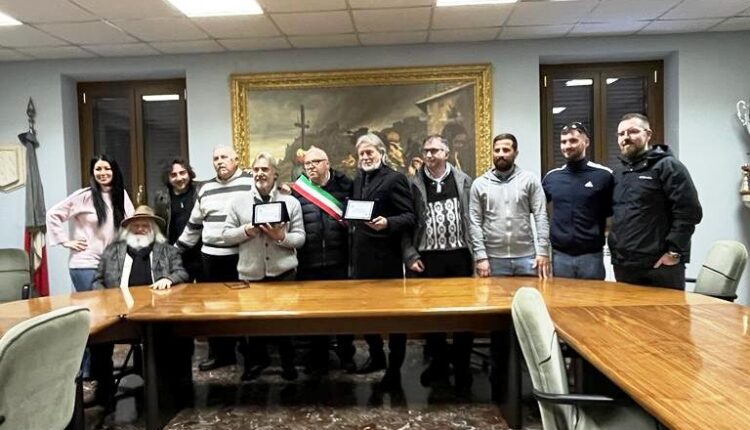 Camerata Nuova – Grandi emozioni a Camerata Nuova, il sindaco Settimio Liberati in un clima di grande entusiasmo generale ha consegnato due targhe speciali di riconoscimento istituzionale a due importanti attori protagonisti della cinematografica italiana che lega il borgo di Camerata alla coppia storica di Bud Spencer e Terence Hill. Ottaviano dell’Acqua e Massimo Vanni, più volte sono stati a Camerata ed in particolare a Camposecco per le scene di film girate in queste aree suggestive del parco dei Simbruini. In particolare Vanni è stato protagonista indiscusso anche in pellicole girate con la fantastica coppia Bombolo ed Er Monnezza che hanno entusiasmato tante generazioni per la loro ilarità.