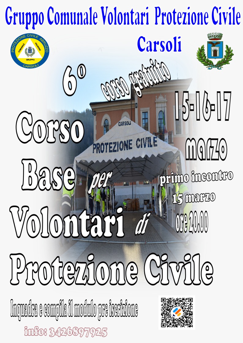 CARSOLI – Prende il via la tregiorni di corso assolutamente gratuito per volontari di Protezione Civile. Una iniziativa di grande interesse e coinvolgimento per la solidarietà civica. L’organizzazione è curata dal gruppo comunale V.P.C. di Carsoli di cui è coordinatore Francesco Callipo.