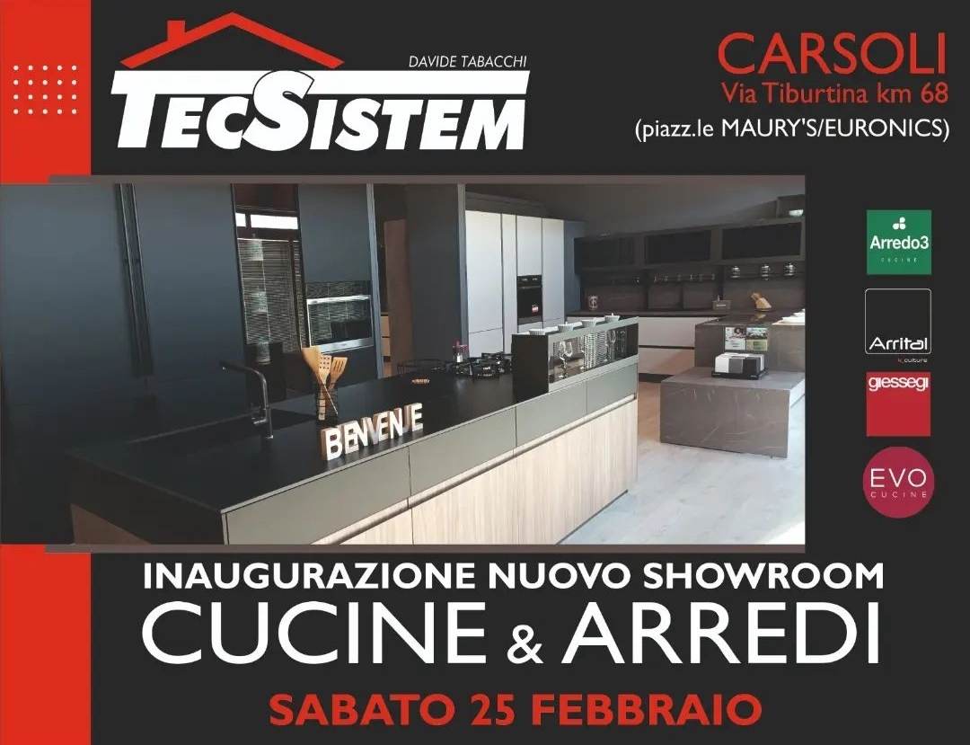 CARSOLI – Innovazione nell’arredo, cura di quei dettagli che fanno la differenza con una doppia expo nel nuovo show room allestito dalla TecSistem di Davide Tabacchi. L’inaugurazione è stata organizzata per sabato 25 febbraio 2023, giorno in cui si potranno visitare le expo di cucine uniche nel loro genere, ideate e pensate per ogni esigenza e per rendere la casa una oasi tutta da vivere e da apprezzare. Ma al piano superiore spazio anche a tante altre soluzioni innovative di arredo come camere da letto, soggiorni, cabine armadio e tante nuove idee per arredare con gusto, unicità e potendo vivere la praticità delle soluzioni che sono progettualmente adattabili ad ogni esigenza e per ogni spazio, ma tanti e tanti altri ancora sono i servizi offerti per rendere perfetti gli ambienti anche nelle fasi di predisposizione lavori edili.