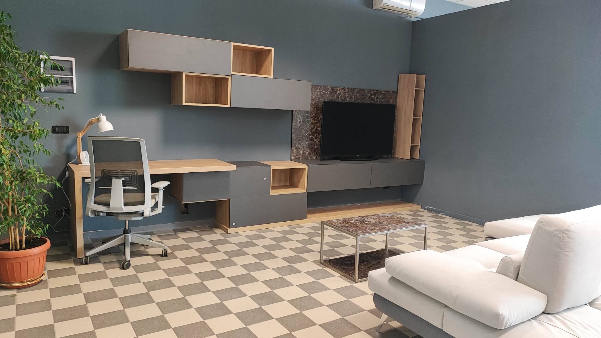 Tra le varie collezioni si può apprezzare questo design del tutto particolare: un soggiorno ben attrezzato per la tv anche di ampie dimensioni, con un divano d’eccellenza con schienali mobili per avere in un attimo il relax assoluto a disposizione. Ed anche gli arredi con le nuove esigenze di lavoro in smart working o anche per lavorare, fare i compiti nella foto sottostante è apprezzabile una soluzione in cui si può anche lavorare con il computer con una sedia ergonomica che consente di stare nella giusta postura.