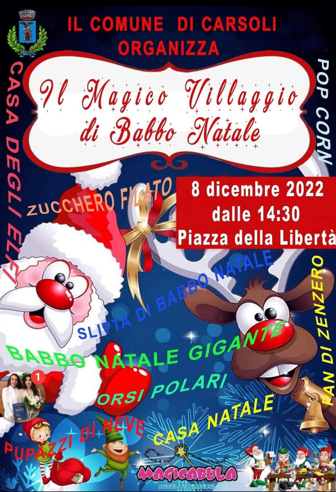 Carsoli – L’8 dicembre alle ore 14.30, in Piazza della Libertà, il Villaggio di Babbo Natale aprirà le sue porte, per far vivere ai più piccoli e alle loro famiglie la Magia del Natale.