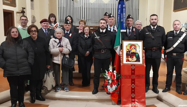 CARSOLI – In un clima di emozione e partecipazione si è svolta oggi alle ore 17.00 presso la Chiesa Parrocchiale di Santa Vittoria la Santa Messa solenne in onore della Virgo Fidelis, patrona dell’Arma dei Carabinieri. Una ricorrenza sentita dal locale comando e dai soci dell’Associazione Nazionale Carabinieri, che ogni anno portano in venerazione il quadro della Vergine.