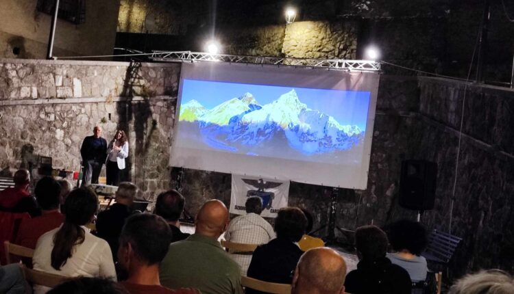 CARSOLI – Nella zona pedecastellana di Carsoli, in piazza delle Erbe e proprio in prossimità della sede ufficiale del Cai si è svolta sotto le stelle una vera e propria celebrazione della montagna. Alla serata ha assistito un pubblico numeroso ed attento. L’incontro sotto le stelle è stato presentato dal presidente del Cai Giampiero Giuliani, il quale con emozione ha presentato Davide Chiesa alpinista originario di Piacenza, intervenuto a Carsoli proprio per raccontare la sua affascinante esperienza di scalata della vetta più alta del mondo. Il sindaco Velia Nazzarro ha rivolto il suo saluto ed un ringraziamento alla intensa attività che il Cai svolge nel territorio. Affascinante la proiezione del film “Fino alla fine dell’Everest”, un documentario di grande interesse culturale e sociale che l’autore ha definito come una storia d’amore in versione cinematografica rivolta alla montagna. Presente anche il vice sindaco Gianpaolo Lugini.