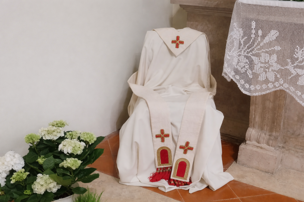 CARSOLI – La memoria di don Bruno Innocenzi, già parroco di Carsoli dal 1985 al 2000, è stata ricordata oggi a Carsoli all’indomani della cerimonia funebre svolta ieri alla Cattedrale di Avezzano. Al fianco dell’altare della Reposizione, (Sepolcro Pasquale) allestito per la celebrazione della “Missa in Coena Domini”, è stata posta la veste che Don Bruno aveva donato alla Parrocchia nel corso della sua ultima visita a Carsoli, ossia il 14 agosto 2025 in occasione della tradizionale “Inchinata”.