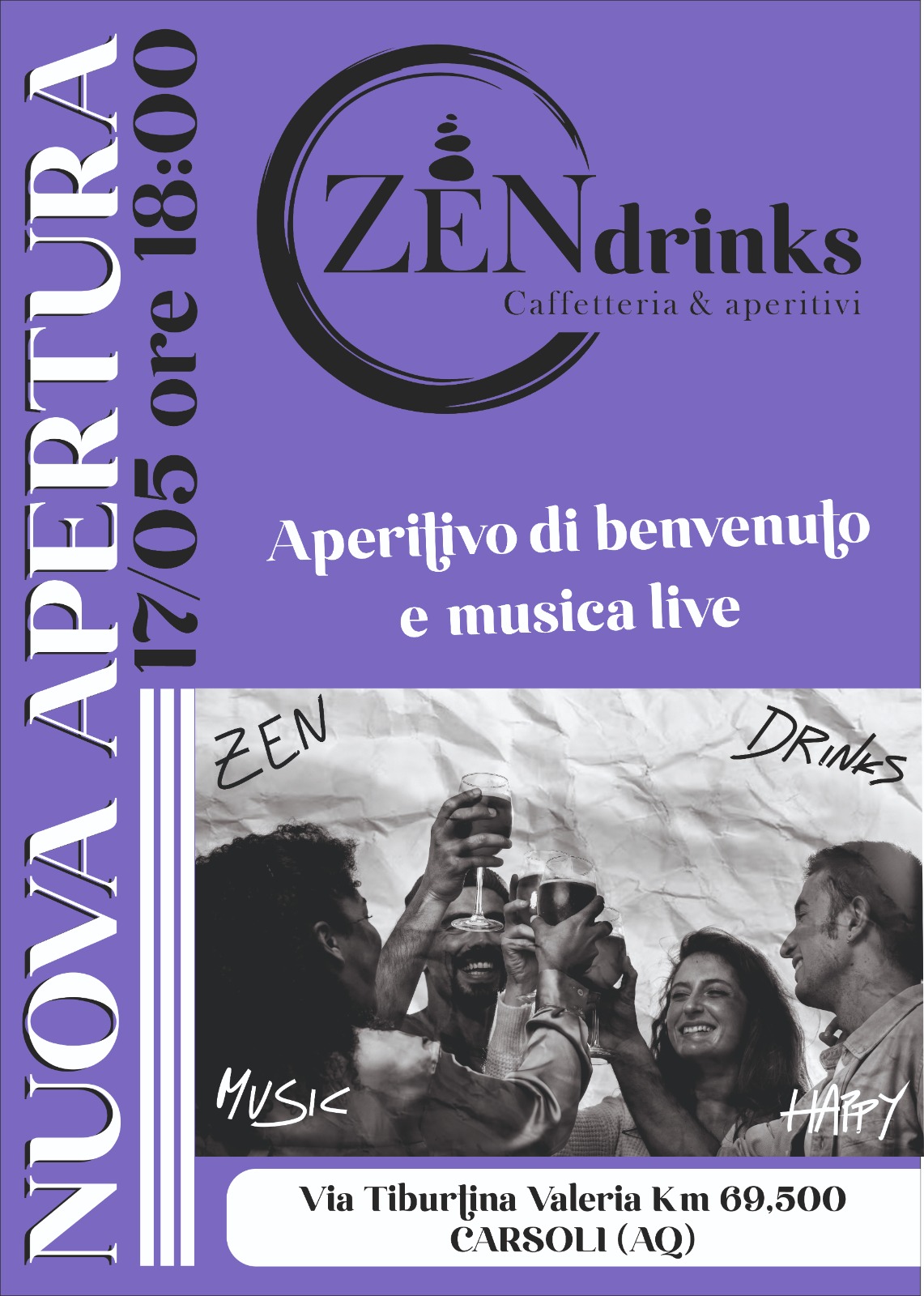 CARSOLI – È tutto pronto per il debutto di Zen Drinks, la nuova caffetteria e cocktail lounge che promette di diventare un punto di riferimento per gli amanti del buon gusto e della convivialità. L’attesa è alta in città: sabato 17 maggio 2025, a partire dalle ore 18.00, Elena e Irene apriranno ufficialmente le porte del loro locale con un evento inaugurale che si preannuncia ricco di sorprese.
