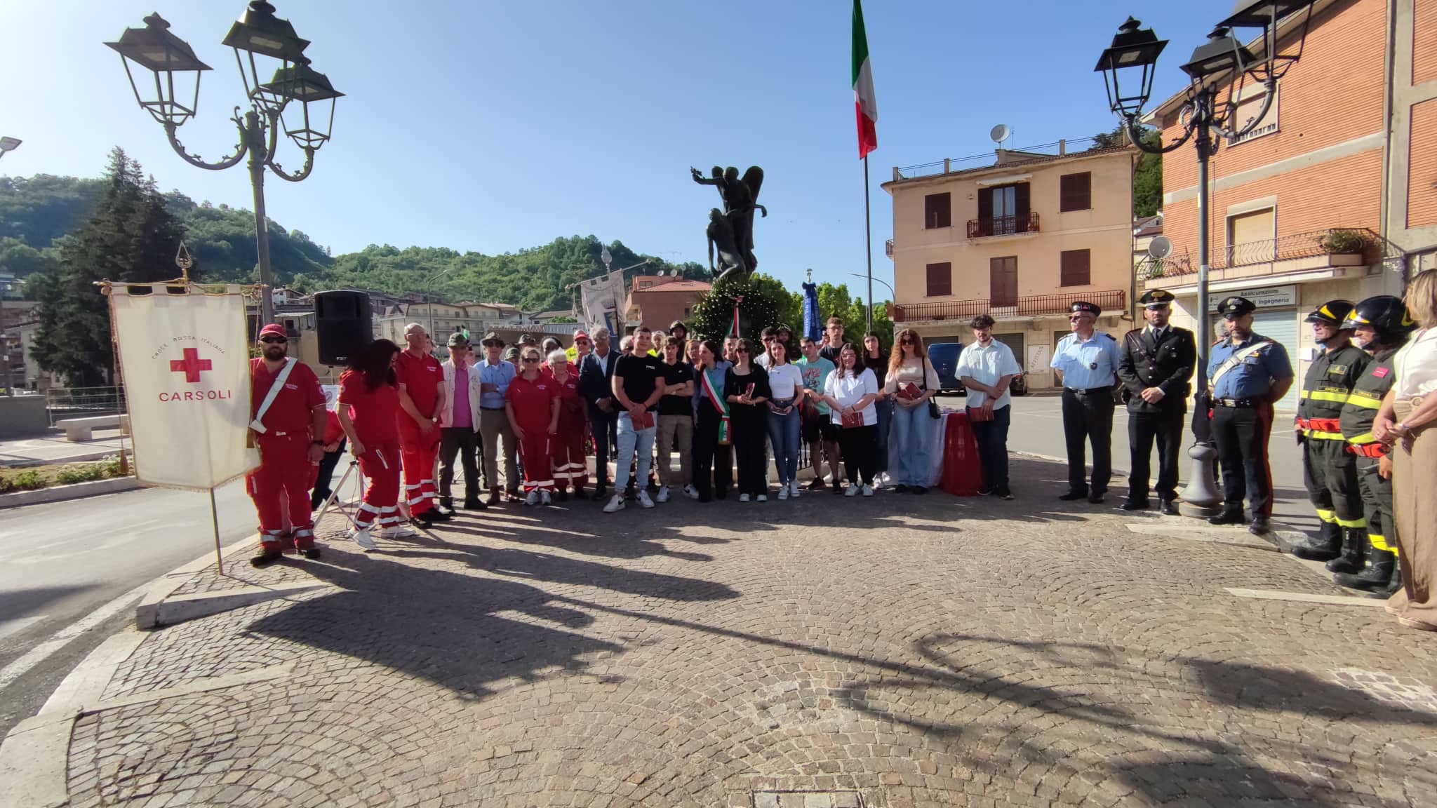 CARSOLI – Si è svolta ieri la cerimonia di celebrazione per la festa della Repubblica Italiana in un clima di grande raccoglimento. Significativa la presenza dei diciottenni che hanno aperto il corteo scortando la bandiera nazionale. Durante l’allocuzione di rito il sindaco Velia Nazzarro ha ripercorso l’essenza dei valori della carta costituzionale citando frasi di Piero Calamandrei. Al termine della cerimonia che si è svolta presso il Monumento ai caduti di Piazza Marconi, il primo cittadino ed il presidente del consiglio Chiara Cimei hanno consegnato copie della costituzione ai diciottenni del 2022. Significativo l’intervento di Amos Luongo che per tutti ha rappresentato la posizione e le riflessioni dei giovani che sono il nostro futuro.