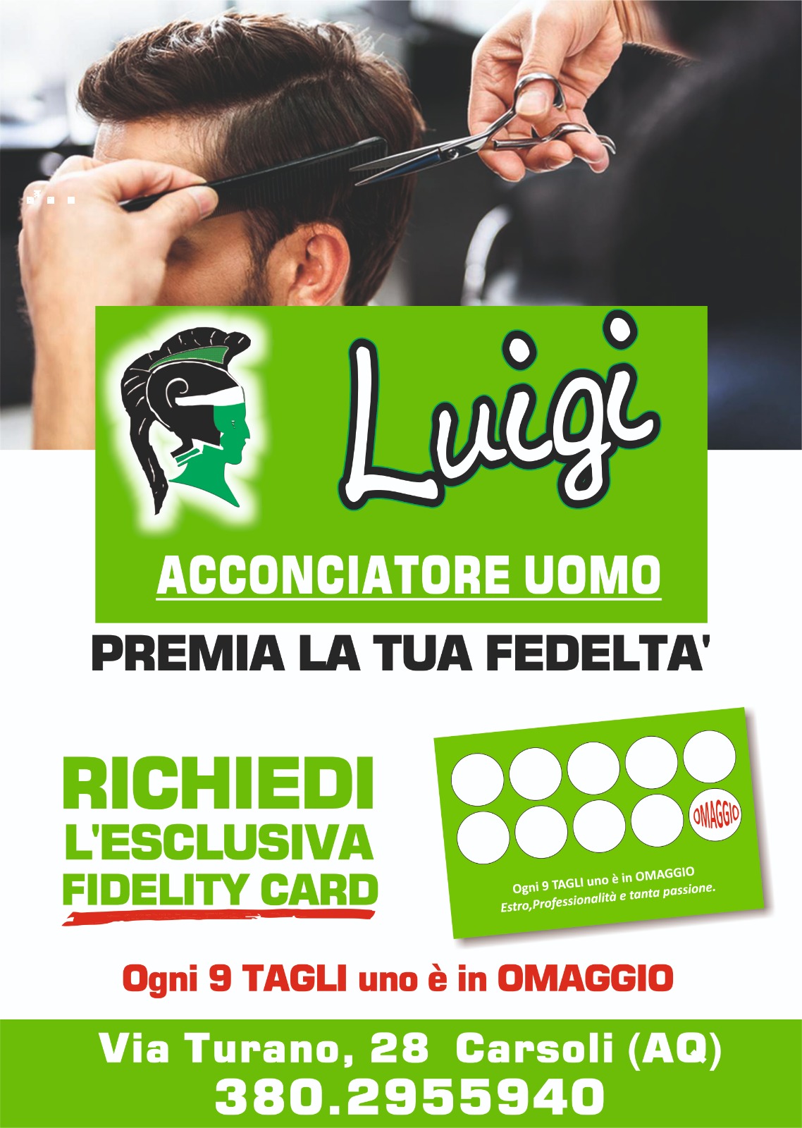Carsoli – Una interessante iniziativa è stata intrapresa dal “Barbiere Luigi” a Carsoli nella centralissima via Turano. Con la nuova fidelity card, ogni 9 tagli uno sarà gratis. Questa la formula per premiare la fedeltà e per contenere i costi.