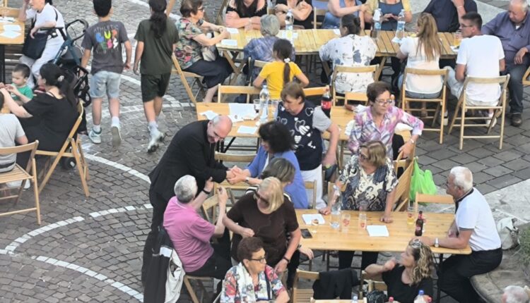 CARSOLI – Ieri il Vescovo Giovanni Massaro ha vissuto un pomeriggio/sera particolarmente intenso. Oltre all’importante messaggio cristiano e di fede evidenziato nel corso della sua omelia durante la celebrazione liturgica, la guida pastorale diocesana si è intrattenuta per tutta la sera con i fedeli di Carsoli e di Luco dei Marsi. Ha dialogato con tutti, visitando i vari tavoli con una testimonianza vivace di autentica vicinanza tra l’istituzione religiosa ed i fedeli. Ha rassicurato tutti, coloro che erano dispiaciuti per l’addio a don Roberto per un verso, e a don Umberto per l’altro. La fede, consente di superare tutto, ha spiegato Sua Eccellenza.