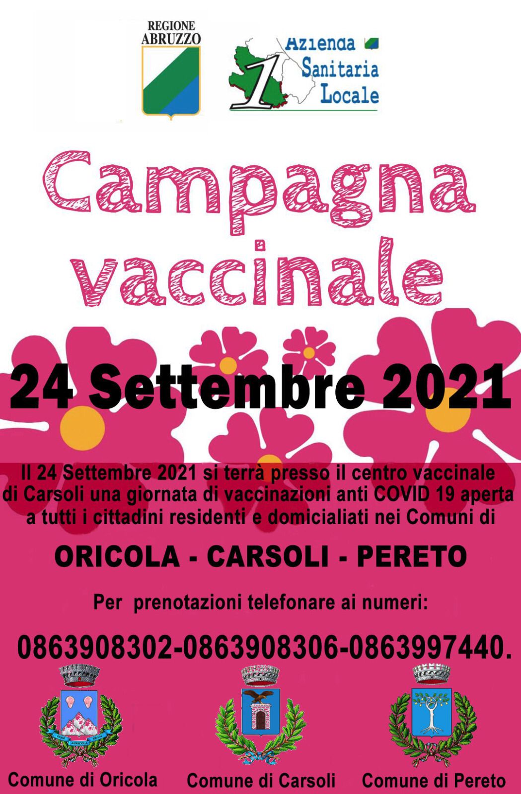 Carsoli – E’ stato organizzato presso il centro vaccinale di Carsoli in via L’Aquila, un open day aperto a tutti i residenti e domiciliati dei comuni di Carsoli, Oricola e Pereto.