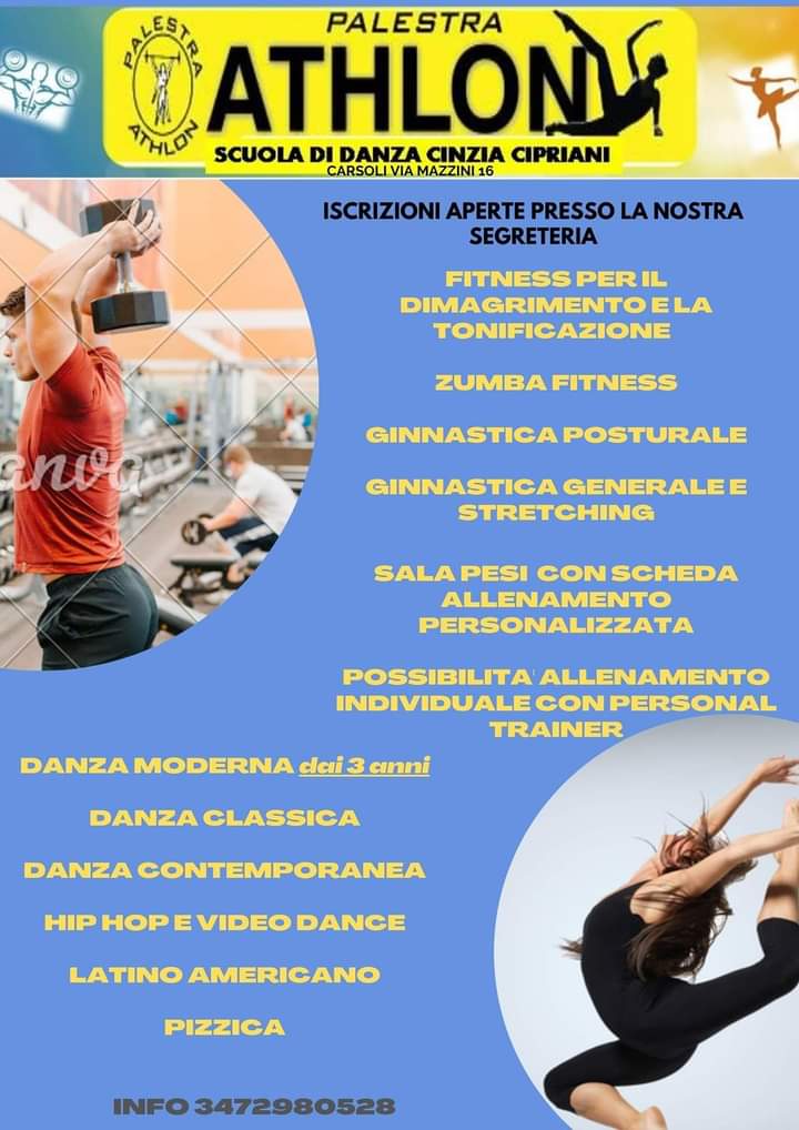 Carsoli. La palestra Athlon riparte! Finalmente dopo oltre un anno e mezzo di chiusure, causate dalla pandemia, il 6 settembre 2021 la palestra Athlon riapre tutti i corsi.