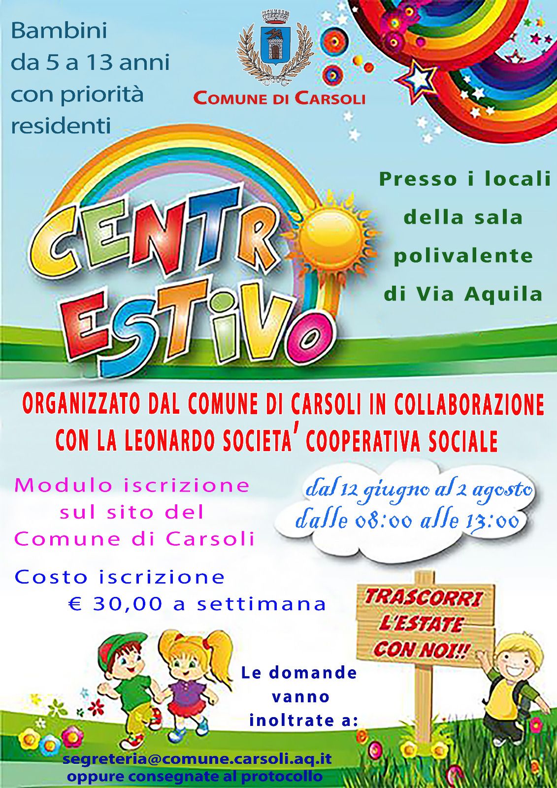 Carsoli – “Anche per l’estate 2023 il Comune di Carsoli ha organizzato, con la collaborazione della “Leonardo Soc. Coop Sociale”, il Centro Estivo per i bambini dai 5 ai 13 anni.” Lo rende noto il sindaco Velia Nazzarro.