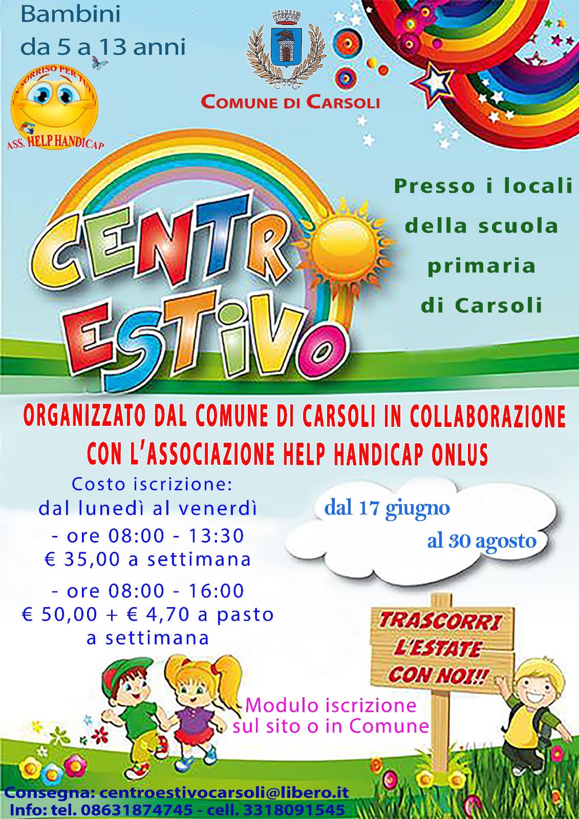 CARSOLI – Anche quest’anno torna il centro estivo per bambini da 5 a 13 anni. Tante le attività ludiche che saranno organizzate per il divertimento dei più piccoli. Di seguito il dettaglio evento con tutte le informazioni: