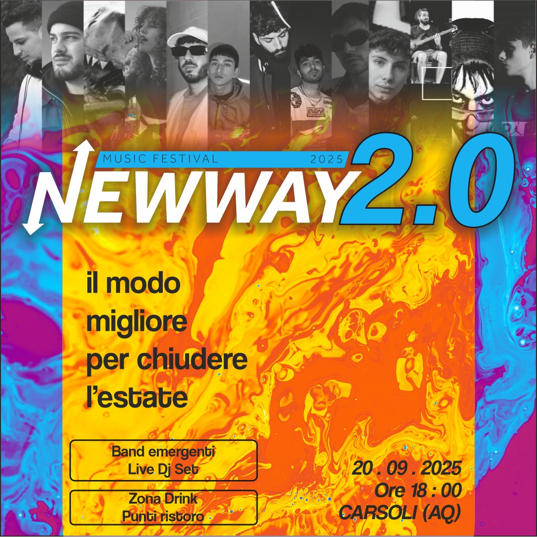 CARSOLI – Grande fermento a Carsoli per il ritorno del NewWay Music Festival 2.0, che animerà via Nova sabato 20 settembre 2025. Dopo il successo della scorsa edizione, l’evento si prepara a richiamare un pubblico numeroso, pronto a vivere una serata di musica, buon cibo e divertimento.