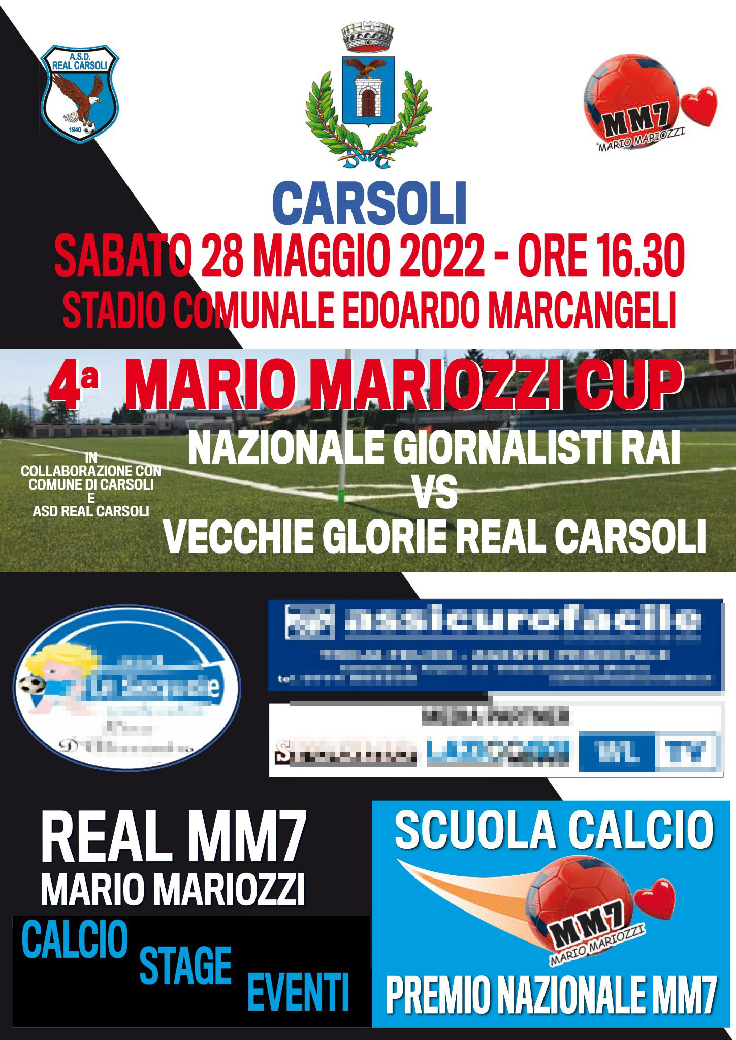 CARSOLI – Torna la quarta edizione del Mario Mariozzi Cup presso lo stadio Edoardo Marcangeli di Carsoli. L’Appuntamento per la disputa che vede in competizione la Giornalisti Rai che se la dovrà vedere con le vecchie glorie del Real Carsoli che daranno sicuramente filo da torcere.