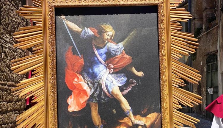 Castel Madama – Come ogni anno per l’anniversario dell’apparizione di San Michele al Gargano, Castel Madama lo ricorda con una processione per le vie del paese avvenuta ieri. Viene portata a spalla la Macchina lignea del Santo fatta, ornata e dorata nel 1796 grazie alla “devozione del Popolo ed il Sacerdote Michele Cottarelli”, come si legge nell’iscrizione posta sul retro della Macchina stessa. Una tradizione sentita e partecipata.