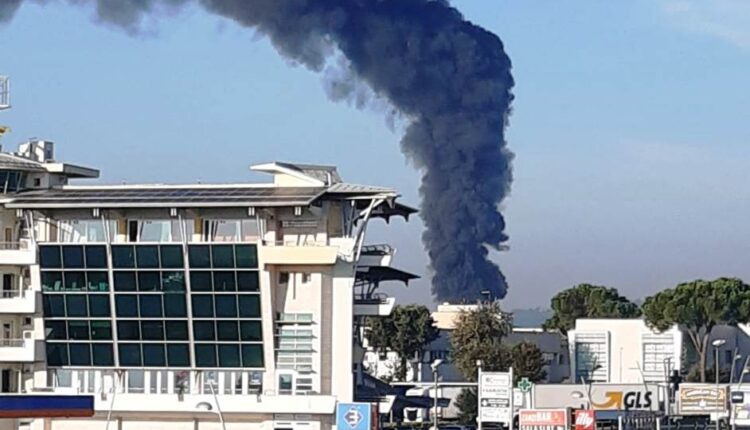A Fiano Romano in fiamme un magazzino di ortofrutta: intensa la nube di fumo
