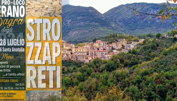 GERANO – Torna uno degli appuntamenti gastronomici più conosciuti e apprezzati dell’intera provincia di Roma: la Sagra degli Strozzapreti a Gerano. La location sarà quella dell’area mercatale del Prato di Santa Anatolia, ai piedi del paese e proprio dinanzi al Santuario del VI sec. dedicato alla Vergine romana, patrona del paese. Appuntamento sabato 27 e domenica 28 luglio per due giorni di gastronomia, musica e divertimento.