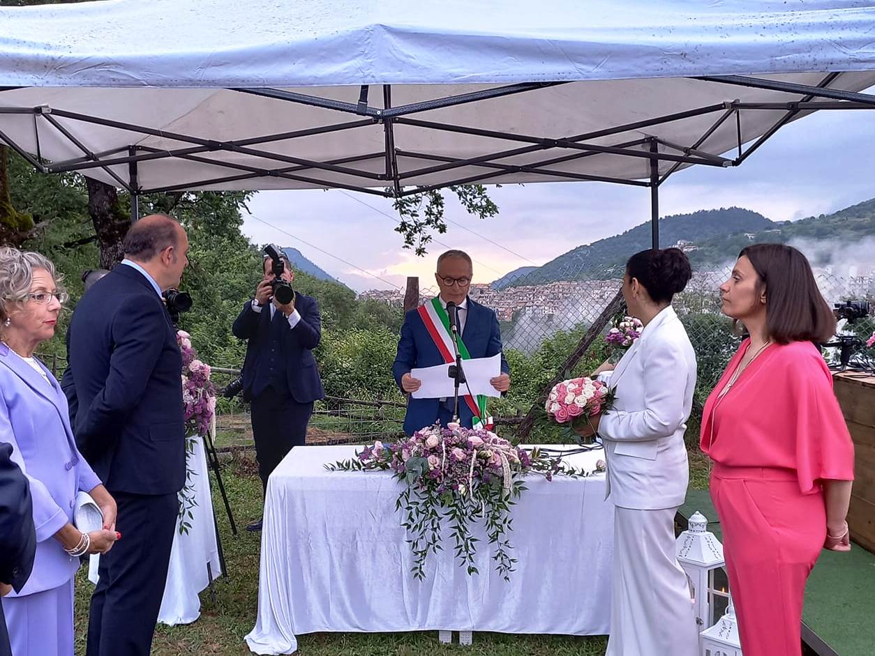 JENNE – Nella suggestiva cornice d’incanto del “Lescuso” di Jenne è stata celebrata una emozionante cerimonia di nozze nella perla della valle Aniene. Il vice sindaco Cristiano Lauri ha celebrato il matrimonio di Emanuela Pacchiarotti e Giovanni Monaco. Testimoni d’eccellenza per lei Alessandra Pacchiarotti, per lui Lorella Monaco. Auguri di ogni bene agli sposi che hanno coronato il sogno d’amore in una atmosfera resa unica nel suo genere dallo staff del “Lescuso”, luogo ideale per la celebrazione di matrimoni e ricorrenze in grande stile.
