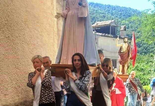 Carsoli – Il sindaco Velia Nazzarro ha partecipato ai festeggiamenti di Montesabinese, portando a spalla la statua della Madonna.