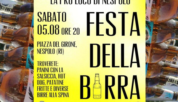 NESPOLO  (RI) – Appuntamento da non perdere nella suggestiva e bella cornice del borgo di Nespolo: sabato 5 agosto 2023 dalle ore 20.00 al via la FESTA DELLA BIRRA. L’organizzazione è curata dalla Pro-Loco di Nespolo, con il patrocinio del comune, della regione Lazio e dell’Unpli nazionale.