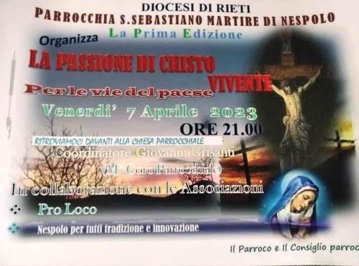Nespolo – Dopo molti anni torna protagonista nel bel borgo di Nespolo l’antica rappresentazione della “Passione Vivente”. Si potranno rivivere questa sera antiche emozioni che hanno caratterizzato le generazioni precedenti nel fascino delle vie del centro storico. Si parte dalle ore 21.00 per una iniziativa che si preannuncia essere in grande stile. Il coordinamento è di Giovanni Grisanti, maestro del coro della Parrocchia di San Sebastiano di Nespolo e realizzata in collaborazione con la Pro Loco e l’ associazione “Nespolo per tutti tradizione e Innovazione”.