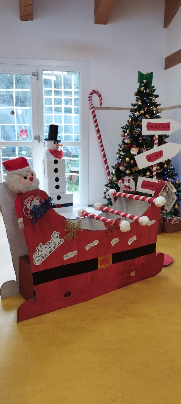 Oricola – La scuola dell’ infanzia di Oricola ha aperto le porte alla Magia del Natale… I genitori ed i piccoli alunni del plesso, in occasione della recita di fine anno, hanno potuto visitare la casa di Babbo Natale, minuziosamente allestita dalle collaboratrici e dalle insegnanti del plesso. Tutto costruito manualmente usando esclusivamente materiale di riciclo…Martedi e’ stata la volta della visita della Dirigente Scolastica Raffaella Fonte, in occasione anche dell open day del plesso, la quale è rimasta entusiasta dell iniziativa. Oggi invece i bimbi e il personale scolastico hanno ricevuto la visita di Elfi e dello stesso Babbo Natale che cominciava a prepararsi per compiere il viaggio più lungo dell anno…Perché adesso tocca a lui…protagonista della notte magica di tutti i bimbi del mondo…Ma non c’è stata magia più bella della gioia che si leggeva negli occhi dei bimbi della scuola e non, che hanno visto avverare il sogno di vedere e ” toccare con mano ” la quotidianità del Babbo più buono del Mondo, non prima di aver spedito la letterina con i loro desideri scritti, imbucandola nella cassetta della posta appositamente dedicata..Un ringraziamento speciale va al Sindaco di Oricola, Antonio Paraninfi che ha permesso la buona riuscita della visita di Babbo con la distribuzione dei doni per i piccini e alla pro loco di Oricola che ha offerto i regali ai bambini del nido, asilo e scuole elementari. Buone feste e buona magia del Natale a tutti da Oricola.