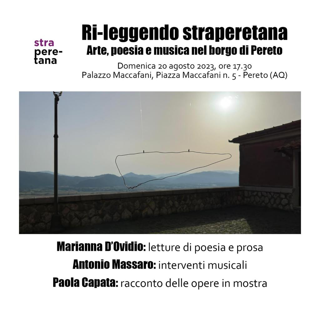 Pereto – Domenica 20 agosto 2023  alle 17.30, nuovo appuntamento a Palazzo Maccafani per una visita guidata alla straperetana accompagnati da una lettura di poesie di autori del Novecento con Marianna D’Ovidio e accompagnamento musicale di Antonio Massaro. Si conclude con un piccolo aperitivo conviviale.