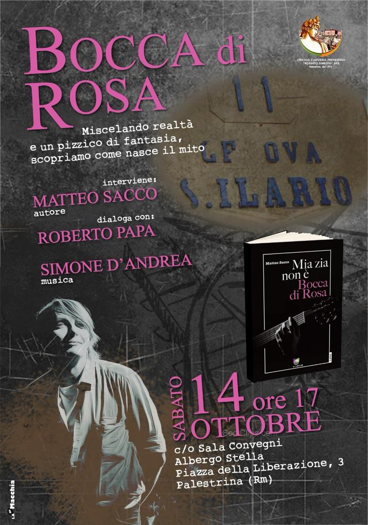 Palestrina – Sabato 14 ottobre alle ore 17,00 presso l’Albergo Stella di Palestrina il Circolo Culturale Prenestino Roberto Simeoni presenta il libro di Matteo Sacco “Mia zia non è Bocca di Rosa” edito da Edizioni All Around.