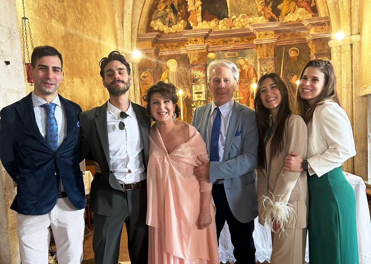 .Le musiche che hanno reso tutto ancorpiù unico e suggestivo sono state “Imagine di Lennon” eseguita dal bravissimo Emanuele Tiburzi che ha accompagnato Alessandro, mentre per la sposa il brano postumo di Lennon “Now and then” dei Beatles. Una cerimonia del tutto unica e particolare. Splendenti tutti, sposi ed invitati.