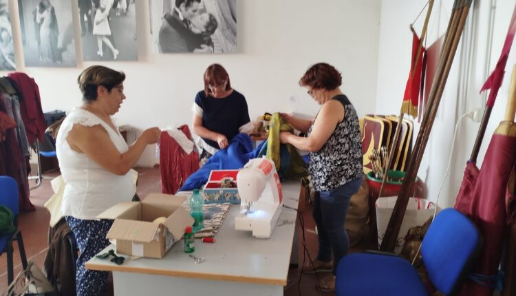 PERETO – Si lavora in estate pensando all’inverno. Nei locali della Pro Loco di Pereto si susseguono gli appuntamenti per le donne del posto volontarie che tutte insieme si ritrovano per rammendare, cucine e preparare adeguatamente i vestiti e gli arredi che serviranno per il noto presepe vivente che ogni anno caratterizza il bel borgo di Pereto. Brave.