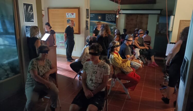 leggerezza di una fiaba, ci invita a credere in un messaggio profondo: solo attraverso i gesti d’amore possiamo aiutare il nostro mondo a diventare un posto migliore. Uno spettacolo di narrazione e suggestioni sensoriali: canzoni, suoni, odori, sapori… per un gruppo di spettatori bendati. Lo spettacolo non vuole essere una celebrazione degli attori, bensì degli spettatori, veri protagonisti di tutto il percorso. Gli attori diventano semplicemente strumenti attraverso cui il pubblico si mette in scena. Chi assiste avrà il piacere di vivere un’esperienza in cui lasciarsi andare, liberare la mente e tornare in luoghi dimenticati, incontrare persone, provare sensazioni forse nascoste in qualche angolo sperduto dei meandri della memoria. Il racconto, scritto da un “empio”, riesce a trasmettere ai bambini il senso del divino attraverso una storia semplice, lineare e suggestiva, con un improvviso finale a sorpresa, commovente e paradisiaco.