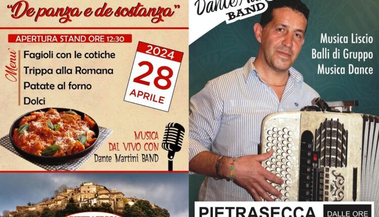 PIETRASECCA – Appuntamento per il 28 Aprile 2024, quando nel bellissimo e suggestivo borgo del carseolano prendono il via i festeggiamenti celebrativi del 950° anno della nascita di Pietrasecca (Petrasicca). 950 anni di storia, e si inizia con la Sagra de panza e de sostanza con musica in Live. La Pro loco invita tutti a partecipare.