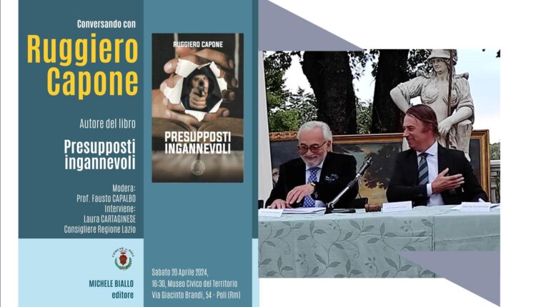 Poli – SABATO 20 APRILE, il giornalista Ruggiero Capone presenterà il suo ultimo libro intitolato “Presupposti Ingannevoli”, pubblicato da Michele Biallo Editore. E’ una spy story (una storia di spie), sebbene non una classica spy story, in cui l’autore, attraverso la storia del Professor Larry Gray, traccia un quadro dell’influenza dei servizi segreti americani nella vita economica e politica dell’Italia dagli anni ’70 al 1992, cioè dall’omicidio di Moro alla fine di Craxi. In questo romanzo avvincente, Capone ci porta in un viaggio attraverso i misteri della mente umana, esplorando le intriganti relazioni tra verità e illusioni. Un’opera che promette di catturare l’immaginazione dei lettori e di stimolare la loro riflessione su temi universali.