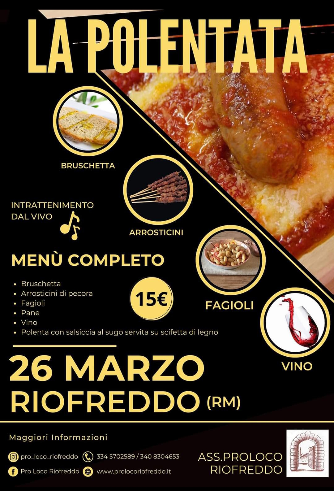 RIOFREDDO – La Pro Loco di Riofreddo inaugura la stagione 2023 con il primo evento ufficiale, invitando gli aficionados e nuovi visitatori alla “Polenata” che si terrà Domenica 26 Marzo, a partire dalle ore 12, press il Piazzale Ricciotti Garibaldi. Il menu completo ha il costo di 15 € e prevede : Bruschetta – Polenta al sugo di carne (servita su scifetta in legna che resterà in omaggio agli avventori) – Arrosticini di pecora & Fagioli – Pane – Bibita (acqua o vino a scelta). La manifestazione prevede la partecipazione straordinaria degli artisti di starda Maurizio Carlini e Lorenza Bohuny che presenteranno lo spettacolo “Semo tutti romani”, rivisitazione delle più belle canzoni romane di tutti i tempi. Quale migliore occasione per trascorrere una bella giornata di sole tra ottima cucina e belle canzoni? E allora tutti in piazza, c’e’ posto per tutti!