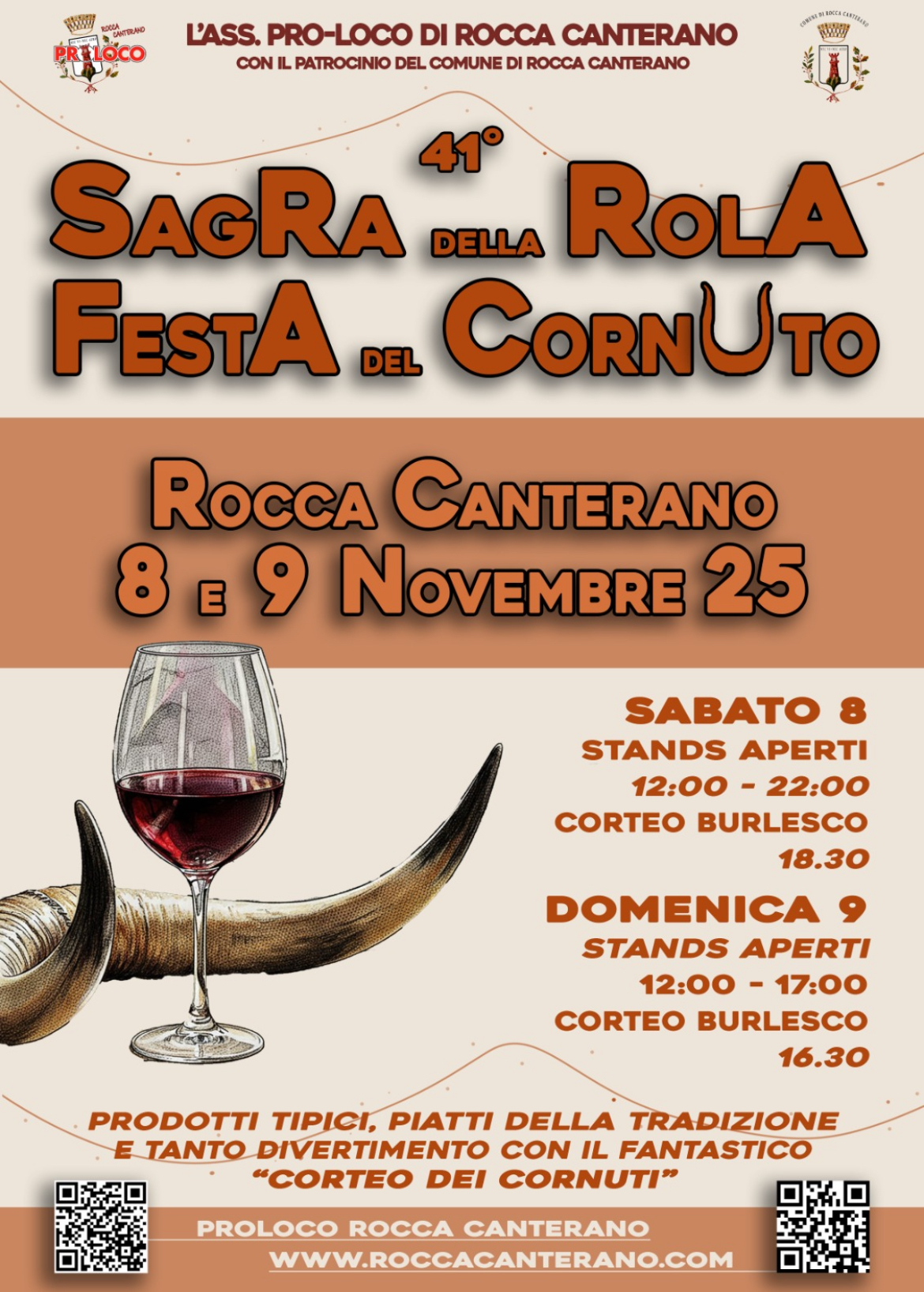 ROCCA CANTERANO -Nel cuore dell’autunno laziale, quando l’aria profuma di legna e di castagne arrostite, Rocca Canterano si prepara a celebrare uno degli appuntamenti più originali e divertenti del calendario popolare: la Sagra della Rola – Festa del Cornuto, che ogni anno si svolge nel weekend che precede o coincide con l’11 novembre, giorno di San Martino. Quest’anno il save the date è l’8 ed il 9 novembre 2025.