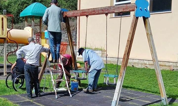A Rocca Santo Stefano volontari riparano i giochi per i bambini