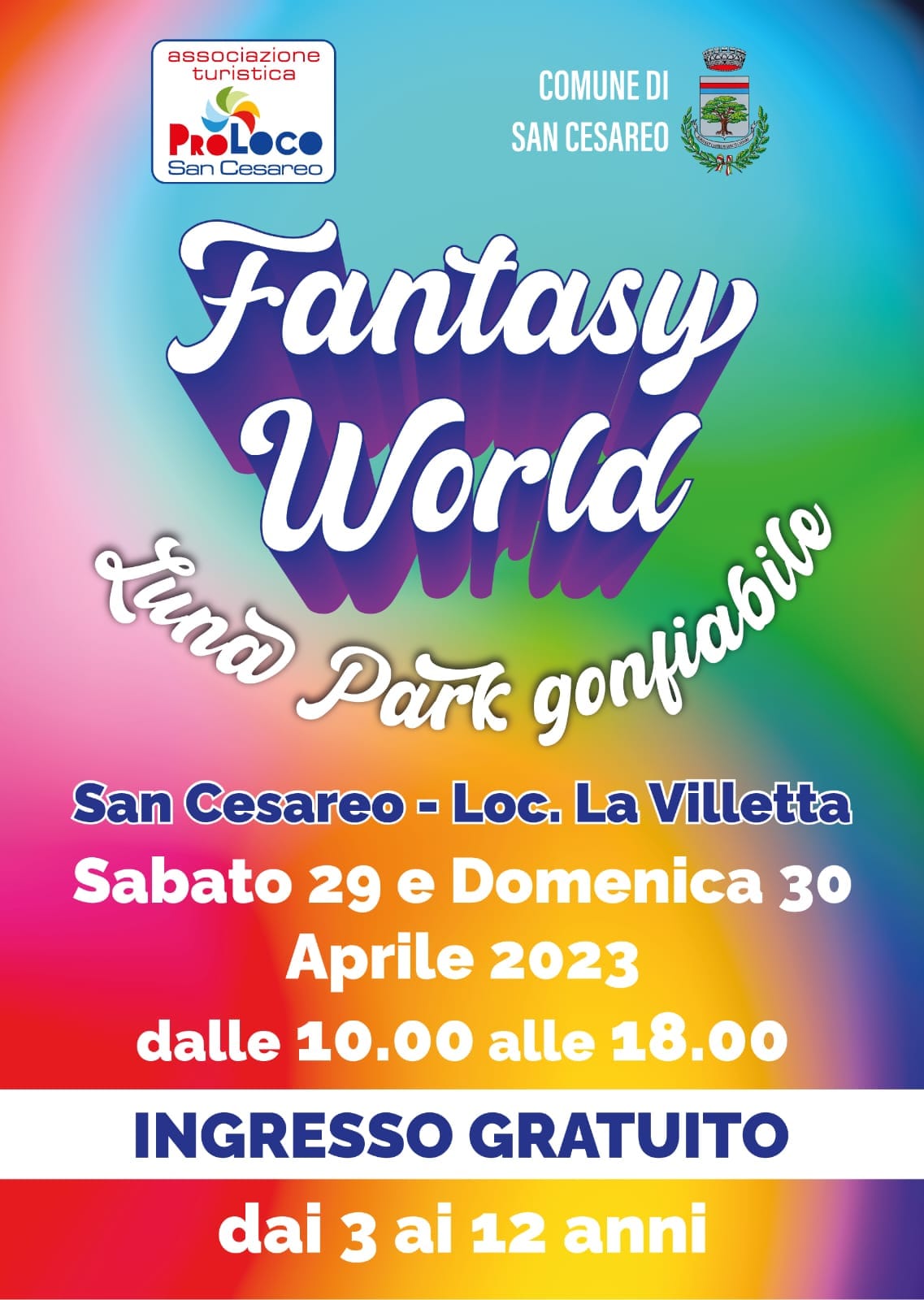 San Cesareo – Il Comune di San Cesareo e la Pro Loco San Cesareo hanno organizzato un evento gratuito di due giorni per i più piccoli: “Fantasy World”, che sì terrà sabato 29 e domenica 30 aprile, dalle ore 10.00 alle ore 18.00.
