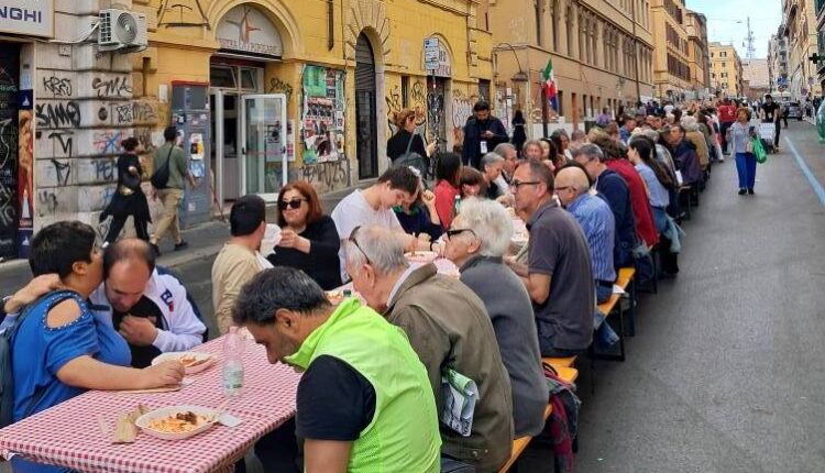 ROMA – Roma Capitale ha celebrato l’80° Anniversario della Liberazione con un programma di eventi, a ingresso libero e gratuito. Per questa terza edizione conclusa ieri ed iniziata il 25 Aprile, cuore della manifestazione è stato il popolare quartiere di San Lorenzo, uno dei luoghi simbolo della lotta partigiana a Roma. Lezioni, incontri, spettacoli, concerti, letture, proiezioni e attività per bambine e bambini per rievocare e condividere i valori fondanti della Resistenza italiana. Bellissima anche la lunga tavolata per la pastasciutta sociale organizzata nelle vie del quartiere tra cui via dei Volsci. Qui protagonista la storica trattoria “Pommidoro” ha messo a disposizione con l’aiuto dei volontari dell’associazione Auser, un pranzo d’eccellenza. Tavolate lunghissime hanno caratterizzato l’evento. Ieri sera grandi nomi per la conclusione in grande stile tra cui Ligabue sul palco.
