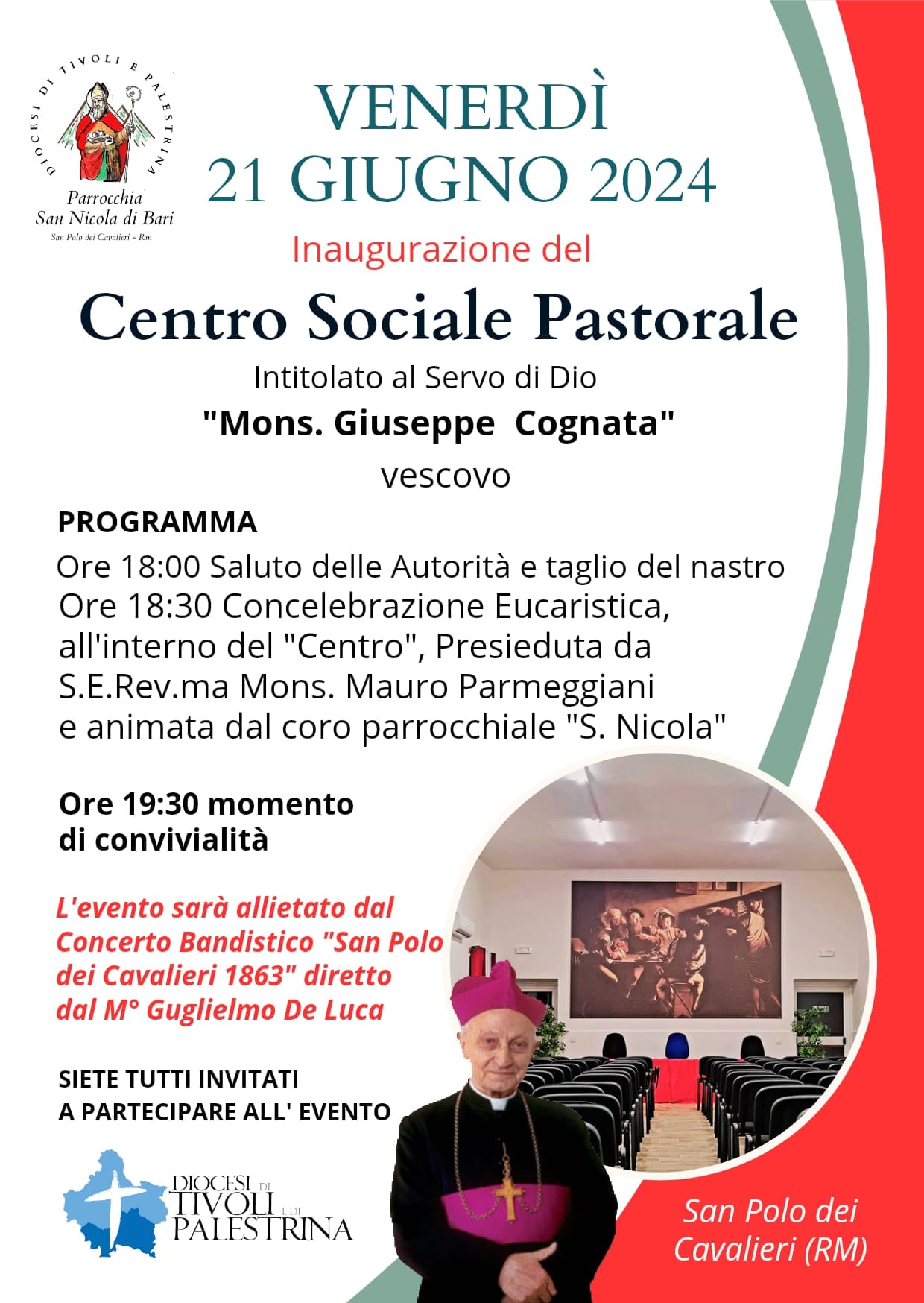 SAN POLO DEI CAVALIERI  – Per opera del parroco don Gaetano Maria Saccà, grande attesa a San Polo dei Cavalieri: si inaugura il nuovo centro sociale pastorare intitolato alla memoria di S.E. Mons. Giuseppe Cognata. Di seguito il dettaglio evento: