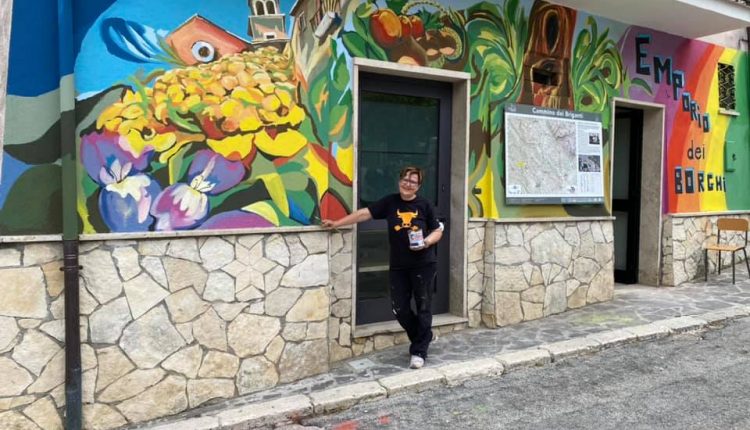 Domenica l’insegnante Antonella D’Angelo ha iniziato a dipingere l’ingresso dell’ con un affresco su Sante Marie. L’opera, che ha attirato subito la curiosità di molti passanti e turisti arrivati in paese per percorrere il cammino dei briganti in questi giorni, è un turbinio di colori che darà il benvenuto a tutti i clienti dell’Emporio!